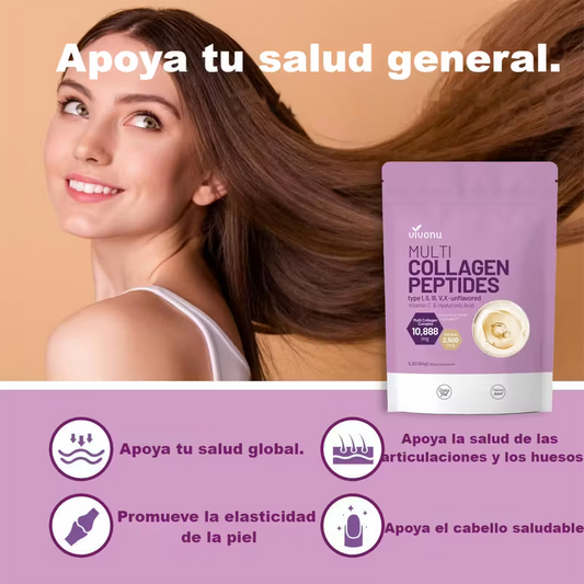 Polvo de colágeno multilayer VIVONU, 1 libra | Contiene tipos de colágeno I, II, III, V y X, así como biotina, ácido hialurónico y vitamina C