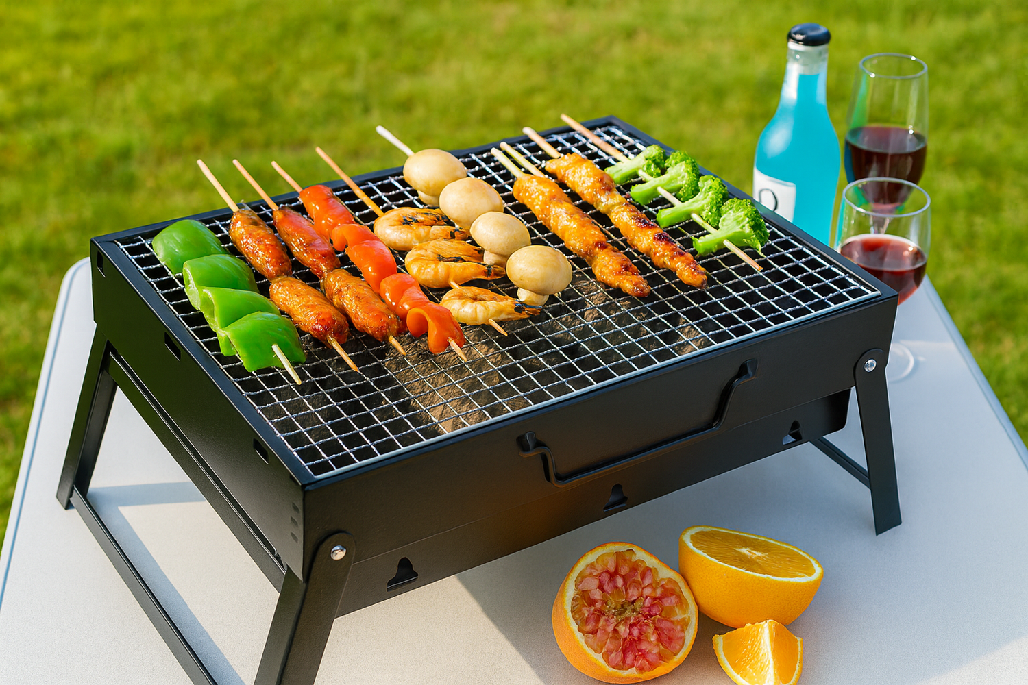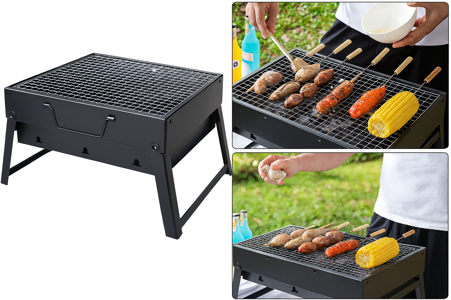 ¿Cansado de complicarte con parrillas grandes o pesadas? Con este asador portátil, puedes preparar tus carnes favoritas donde tú quieras — sin esfuerzo, sin estrés, solo sabor y diversión.