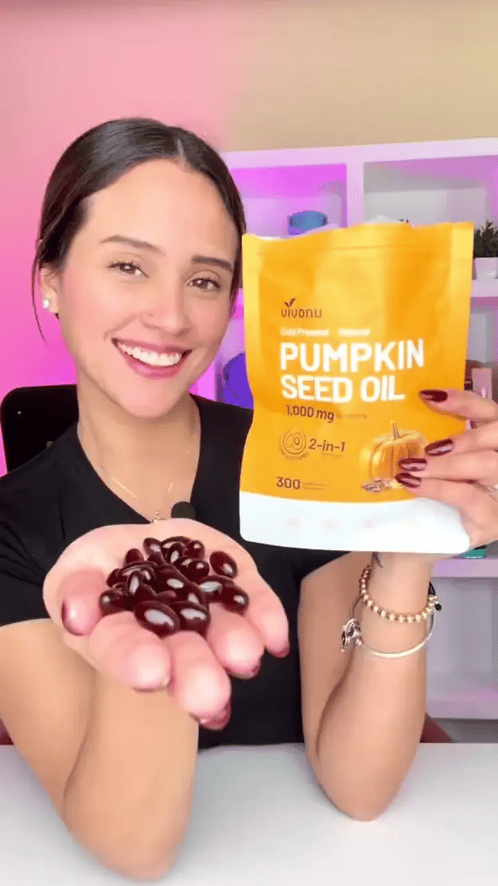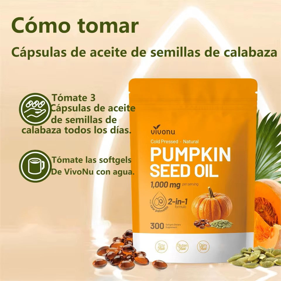 ¿Buscas un suplemento real, no promesas? VIVONU te entrega aceite de semilla de calabaza virgen + serenoa repens en softgels de alta concentración para apoyar la salud general y la apariencia del cabello, con una fórmula clara y confiable.