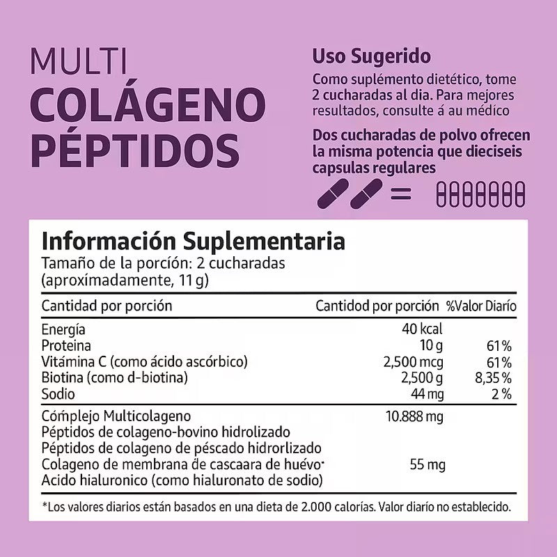 - 🌱 Fórmula natural: Péptidos de colágeno I, II, III, V, X + biotina, ácido hialurónico y vitamina C.
