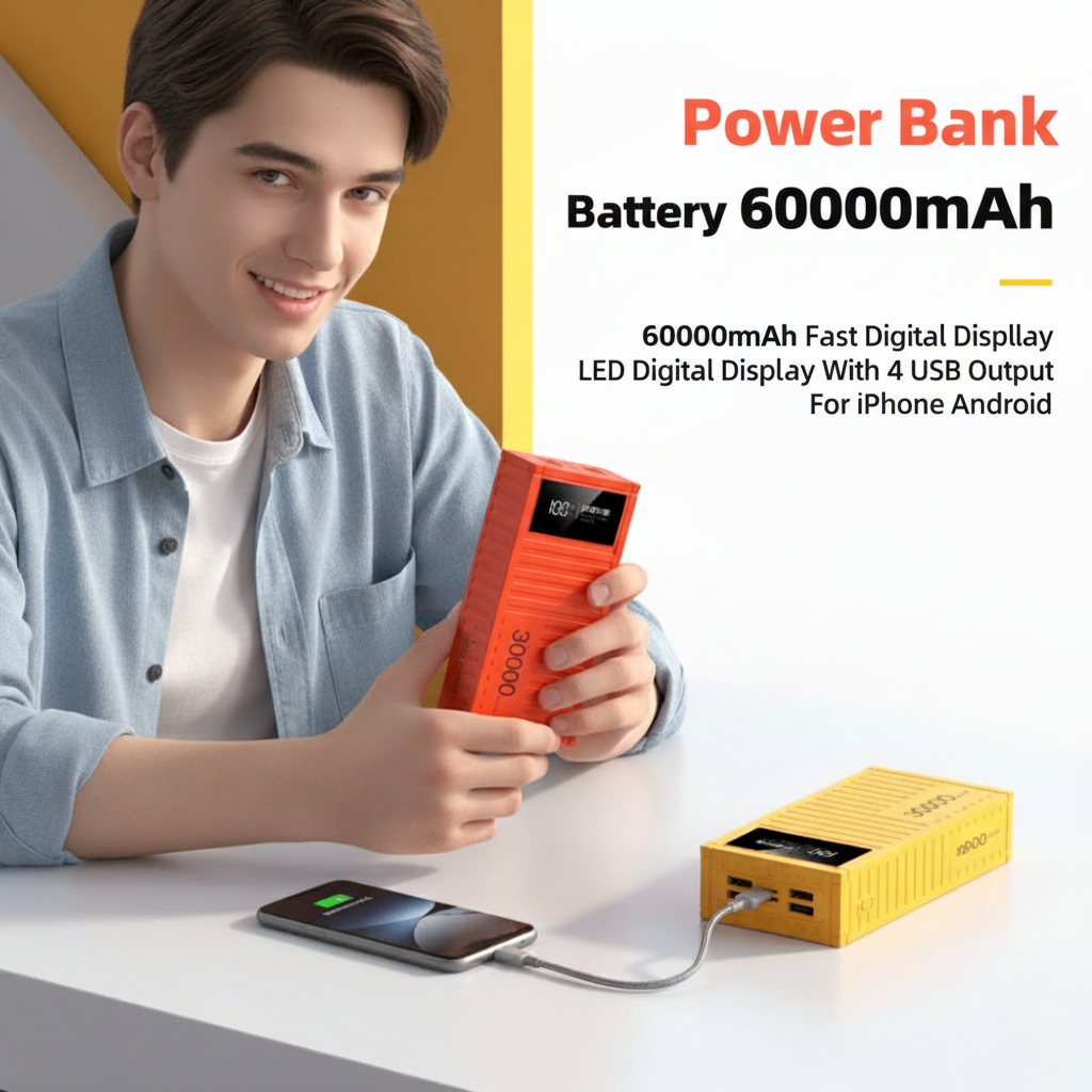 Nuestra Power Bank 60000mAh es tu solución total con:
