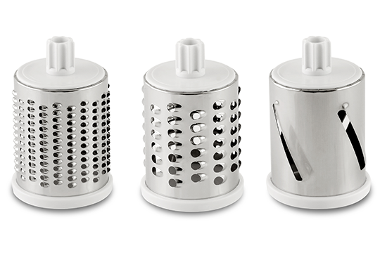 Sus tres tambores de acero inoxidable 430, de súper filo y altísima duración, te garantizan la mayor precisión de cortes. ¡Dile adiós a cortadores de poco filo, que solo ocupan espacio en tu cocina!
