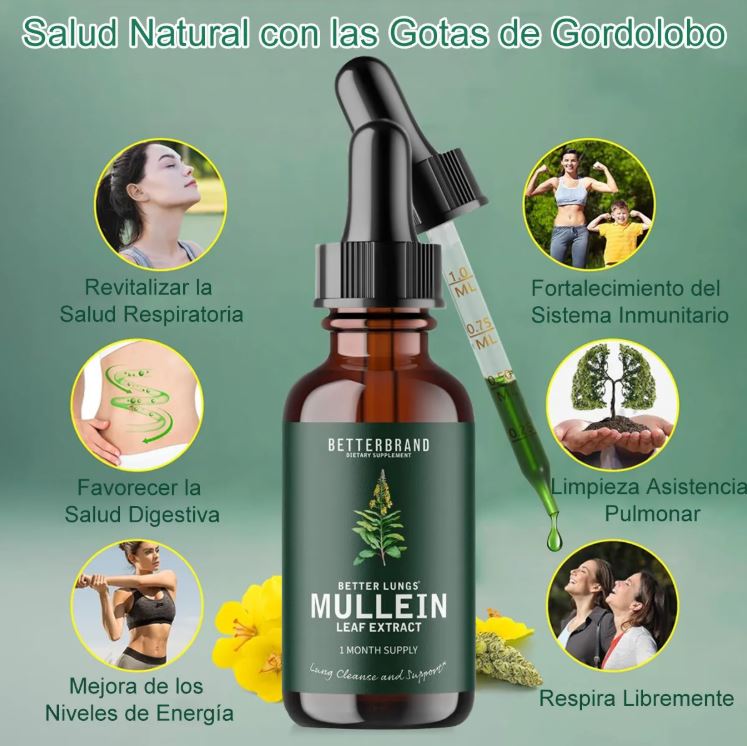 👉 Pero ahora tienes un aliado natural: Mullein Drops con extracto de hoja de gordolobo y clorofila líquida. Una fórmula líquida avanzada que actúa rápidamente para ayudarte a: